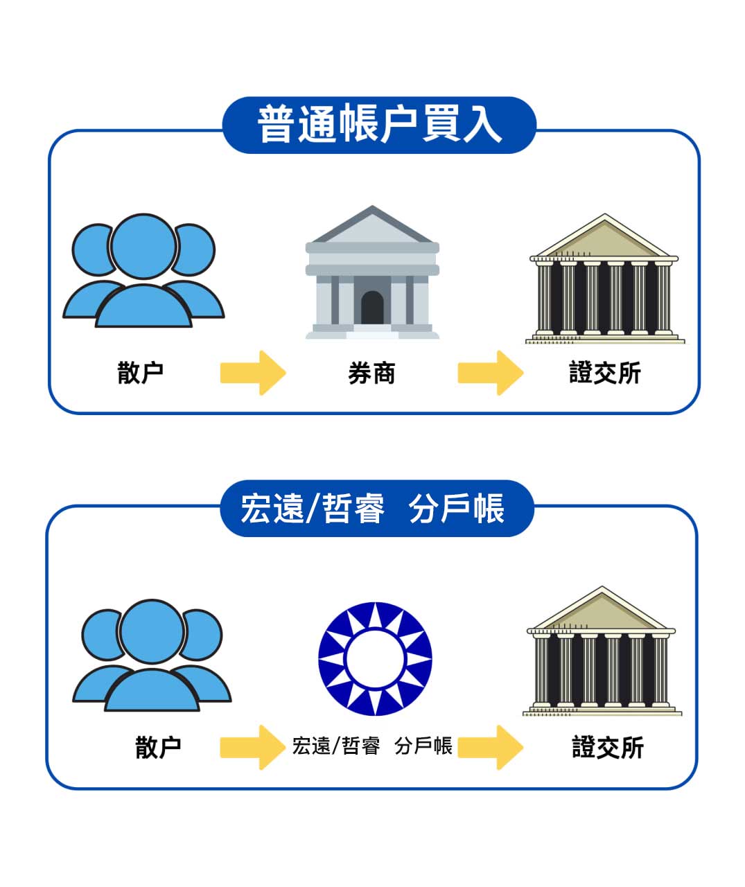 宏遠/哲睿投資有限公司 分戶帳可能會受到政府政策的支持,提供更多優惠,如較低的費用、更穩定的市場環境等。一般的交易帳戶則主要依賴於券商的政策和市場競爭,優惠可能沒有那麼固定或穩定